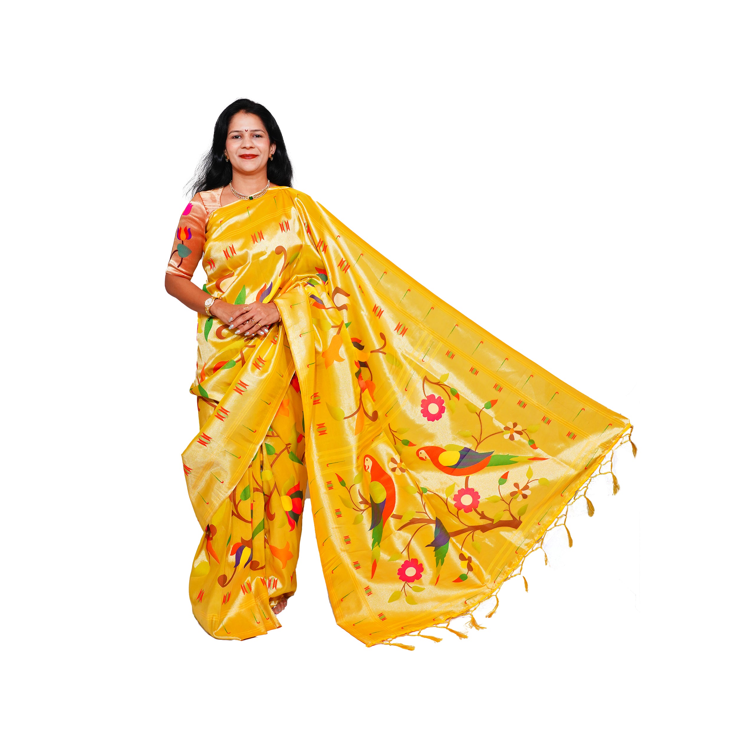 All Over Muniya Border Saree - Yellow