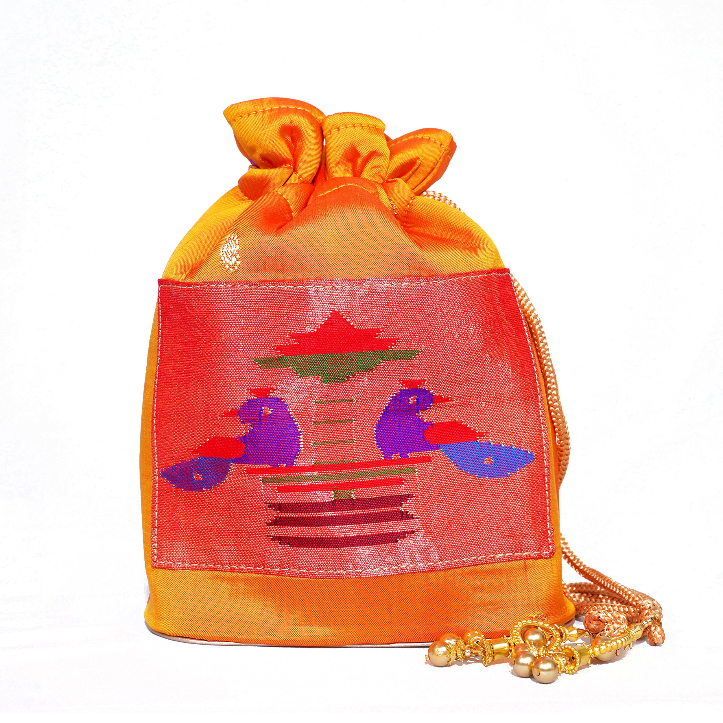 Pure Silk Paithani Batwa - Orange